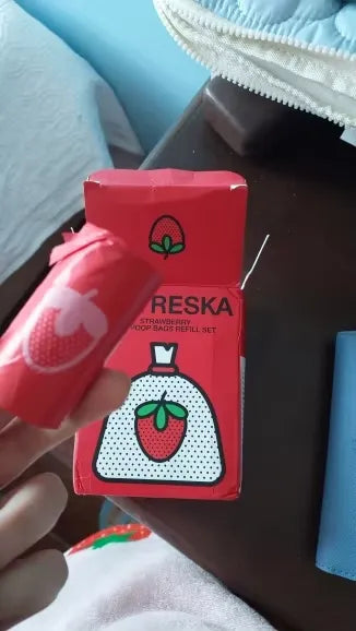 Brighten your cleaning routine with our strawberry-themed waste bags that keep odors at bay